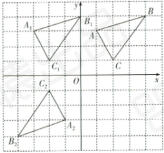 (2)把$\triangle ABC$绕原点$O$旋转$180^{\circ}$后得到对应的$\triangle A_{2}B_{2}C_{2}$,请画出旋转后的$\triangle A_{2}B_{2}C_{2}$,并写出$A_{2},B_{2}$的坐标;