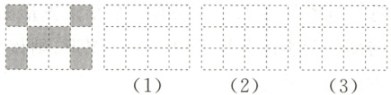 5. 如图,在3×4的网格上,由个数相同的白色方块与黑色方块组成一幅图案,请仿照此图案,在下列网格中设计符合要求的图案(注:①不得与原图案相同;②黑、白方块的个数要相同)。