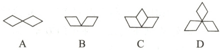 1. 如右图所示的图案是由六个全等的菱形拼成的,它也可以看作是以一个图案为“基本图案”通过旋转得到的。以下图案中,不能作为“基本图案”的是(