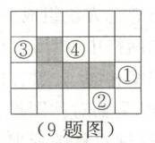 9. (2023·唐山路北区二模)如图,在方格纸中,选择标有序号①②③④的一个小正方形涂黑,与图中阴影部分构成中心对称图形,则该小正方形的序号是(