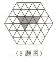8. 如图,在小正三角形组成的网格中,已有6个小正三角形涂黑,还需涂黑n个小正三角形,使它们与原来涂黑的小正三角形组成的新图案恰有三条对称轴,则n的最小值为(