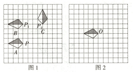(2)图2是某设计师设计图案的一部分,请你运用旋转变换的方法,在方格纸中将图形绕点O顺时针依次旋转90°,180°,270°,依次画出旋转后所得到的图形,你会得到一个美丽的图案,但涂阴影时不要涂错了位置,否则不会出现理想的效果,你来试一试吧!