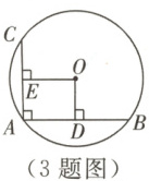3. 如图,在 $ \odot O $ 中,$ AB $,$ AC $ 是互相垂直的两条弦,$ OD \perp AB $ 于点 $ D $,$ OE \perp AC $ 于点 $ E $,且 $ AB = 8 cm $,$ AC = 6 cm $,那么四边形 $ OEAD $ 的周长为