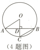 4. (2024·长沙)如图,$ A $,$ B $,$ C $ 是 $ \odot O $ 上的点,$ OC \perp AB $,垂足为点 $ D $,且 $ D $ 为 $ OC $ 的中点,若 $ OA = 7 $,则 $ BC $ 的长为