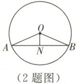 2. 如图,$ \odot O $ 的半径为 13,弦 $ AB $ 的长度是 24,$ ON \perp AB $,垂足为 $ N $,则 $ ON = $(
