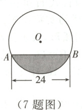 7. (2023·柳州)往水平放置的半径为 $ 13 cm $ 的圆柱形容器内装入一些水以后,截面图如图所示。若水面宽度 $ AB = 24 cm $,则水的最大深度为(