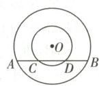 5. 如图,两个圆都以点 $ O $ 为圆心,大圆的弦 $ AB $ 交小圆于 $ C $,$ D $ 两点。