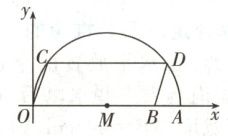 12. 如图,在平面直角坐标系中,点 $ A $ 的坐标是 $ (20,0) $,点 $ B $ 的坐标是 $ (16,0) $,点 $ C $,$ D $ 在以 $ OA $ 为直径的半圆 $ M $ 上,且四边形 $ OCDB $ 是平行四边形,则点 $ C $ 的坐标为