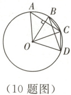 10. 如图,已知 $A$,$B$,$C$,$D$ 四点都在 $\odot O$ 上,$OB \perp AC$,$BC = CD$,下列四个说法: