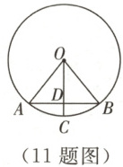12. (2023·陕西西安雁塔期中)如图,$AB$ 为 $\odot O$ 的弦,半径 $OC$,$OD$ 分别交 $AB$ 于点 $E$,$F$,且 $\overset{\frown}{AC} = \overset{\frown}{DB}$.