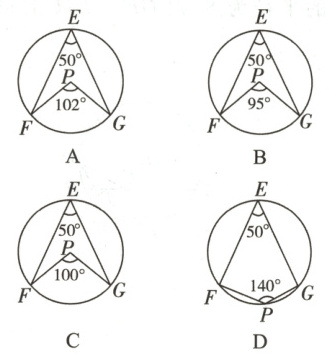 3. (2023·宜昌)如图,E,F,G为圆上的三点,∠FEG=50°,P点可能是圆心的是(