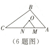 6. (2023·河北一模)如图,点O为△ABC的内心,点M,N在边AC上,且CM=CB,AN=AB。若∠B=100°,则∠MON的度数为(
