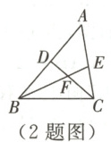 2. 如图,点F是△ABC的内心,∠A=50°,则∠BFC=