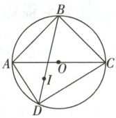 7. 如图,四边形ABCD是⊙O的内接四边形,对角线AC是⊙O的直径,AB=2,I是△ADC的内心,∠ADB=45°。