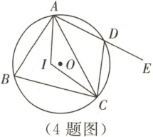 4. (2023·保定竞秀区一模)如图,四边形ABCD内接于⊙O,点I是△ABC的内心,∠AIC=124°,点E在AD的延长线上,则∠CDE的度数为(