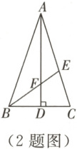 2. (2023·遵化三模)如图,在△ABC中,AB=AC,∠BAC=36°,AD⊥BC于点D,E是AC上一点,连接BE,交AD于点F.若AE=BE,则点F为(
