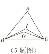 5. 如图,在△ABC中,∠BIC=125°,I是△ABC的内心,O是△ABC的外心,则∠BOC=