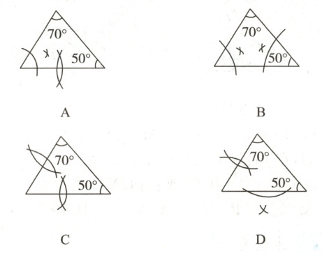(2023·河北)根据圆规作图的痕迹,可用直尺成功找到三角形外心的是(