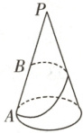 $14. 【$转化思想$】$如图,已知圆锥底面半径为$ 1,$母线长为$ 4,$地面圆周上有一点$ A,$一只蚂蚁从点$ A $出发沿圆锥侧面运动一周后到达母线$ PA $的中点$ B,$则蚂蚁爬行的最短路程为
