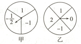 12. 如图,甲、乙为两个可以自由转动的质地均匀的转盘,甲转盘被分成 3 个面积相等的扇形,乙转盘被分成 4 个面积相等的扇形,每一个扇形都标有相应的数字,同时转动两个转盘,当转盘停止后,设甲转盘中指针所指区域内的数字为$m$,乙转盘中指针所指区域内的数字为$n$(若指针指在边界线上,重转一次,直到指针指向一个区域为止)。