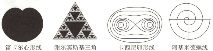 13. 现有背面完全相同, 正面图案如图所示的 4 张卡片, 分别是笛卡尔心形线、谢尔宾斯基三角、卡西尼卵形线和阿基米德螺线, 4 张卡片正面朝下放置在桌面上, 将其混合后, 甲、乙两人依次从中抽取 1 张, 则甲、乙两人抽取的 2 张卡片正面都是轴对称图形的概率是