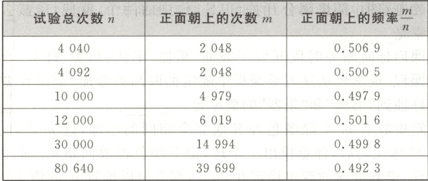 8. 下表列出了一些历史上的数学家所做的“掷质地均匀的硬币”试验的数据: