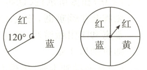 12. 用图中两个可以自由转动的转盘做“配紫色”游戏. 同时转动两个转盘, 若其中一个转出红色, 另一个转出蓝色, 即可配成紫色, 则同时转动两个转盘可配成紫色的概率是
