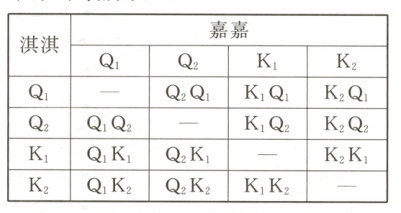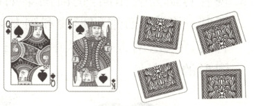 19. (8 分) 如图所示, 这是同一副扑克牌中的两张牌“黑桃 Q”和“黑桃 K”, 现在把这两张牌从中间剪断, 分成 4 张背面形状相同的半张牌, 并背面向上混合在一起搅匀. 嘉嘉和淇淇做游戏, 嘉嘉先从这 4 张半张牌中随机抽取 1 张(不放回), 淇淇接着再随机抽取 1 张.