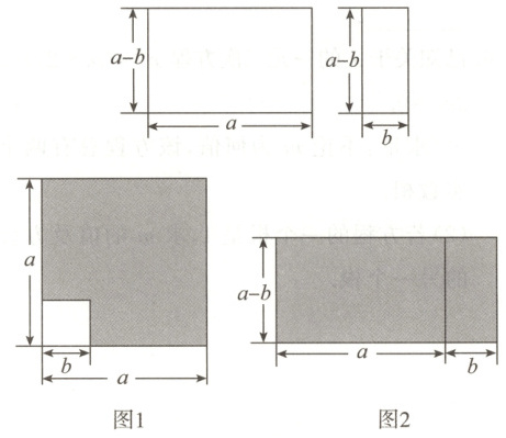 (1)若图1中阴影部分的面积为$a^{2}-b^{2}$,则图2中阴影部分的面积为$($用含字母$a,b$的代数式表示$)$.