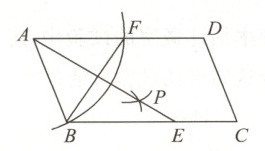14. 如图所示,在平行四边形$ABCD$的$AD$边上截取$AF = AB$,分别以点$B$,$F$为圆心,大于$\frac{1}{2}BF$的长为半径画弧,两弧交于点$P$,连接$AP$,交$BC$于点$E$. 若$AB = 5$,$BF = 6$,则$AE$的长为