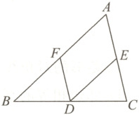 6. 如图所示,在$\triangle ABC$中,$D$为$BC$上一点,$DE// AB$,$DF// AC$。增加下列条件,其中能判定四边形$AFDE$