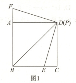 (1)如图1所示,当点$P$与点$D$重合时,点$F$在$BA$的延长线上,则线段$PF$和线段$PE$的数量关系是