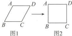7. 用四根长度相同的木条制作了能够活动的菱形学具,学具为图1所示的菱形时,测得$\angle A = 120^{\circ}$,对角线$AC = 20\ cm$,接着活动学具成为图2所示的正方形,则图2中对角线$AC$的长为 (