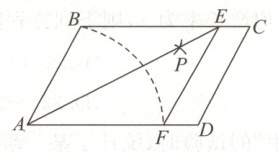 14. 如图所示,在$□ ABCD$中,$AB = 3$,$AD = 4$,以点$A$为圆心,$AB$长为半径画弧,交$AD$于点$F$,再分别以点$B$,$F$为圆心,大于$\frac{1}{2}BF$的长为半径画弧,两弧交于点$P$,连接$AP$并延长,交$BC$于点$E$,连接$EF$,则四边形$ECDF$的周长为