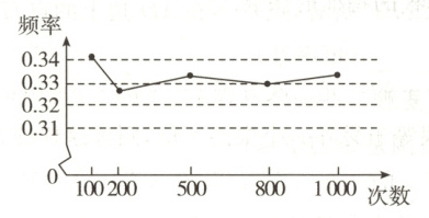 9. 某小组做“用频率估计概率”的试验时,统计了某一事件发生的频率,绘制了折线图,如图所示.该事件最有可能是 (