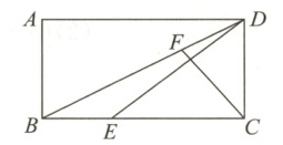 10. 如图所示,在矩形$ABCD$中,$AB = 1$,$BC = 2$,$E$是边$BC$上一动点,$F$是对角线$BD$上一动点,且$BE = DF$,则$DE + CF$的最小值为 (