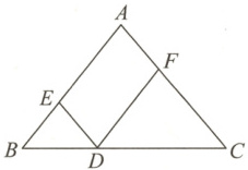 12. 如图所示,在$\triangle ABC$中,$AB = AC$,点$D$在$BC$边上,$DF // AB$,$DE // AC$,则当$\angle B =$