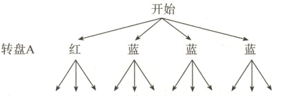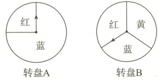 ∵转盘A红色区域和蓝色区域所在扇形的面积之比为1:3,