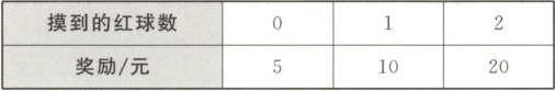 (1)知,方案一的摸球方案的平均收益为$5×\frac{6}{20} +10×\frac{12}{20} +20×\frac{2}{20} =9.5$(元).