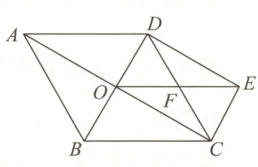 22. (10分)如图所示,在菱形$ABCD$中,对角线$AC$,$BD$相交于点$O$,$F$是$CD$的中点,延长$OF$到点$E$,使$EF = OF$,连接$CE$,$DE$.