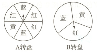 (1)转动 A 转盘,求指针指向蓝色的概率.