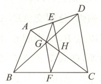 7. 如图所示,已知$E$,$F$分别是四边形$ABCD$的边$AD$,$BC$的中点,$G$,$H$分别是对角线$BD$,$AC$的中点,要使四边形$EGFH$是菱形,则四边形$ABCD$需满足的条件是(