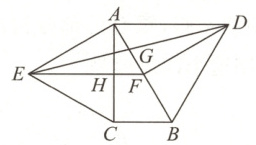 10. 如图所示,分别以$Rt\triangle ABC$的斜边$AB$、直角边$AC$为边向$\triangle ABC$外作等边$\triangle ABD$和等边$\triangle ACE$,$F$为$AB$的中点,$DE$与$AB$相交于点$G$,$EF$与$AC$相交于点$H$,$\angle ACB = 90^{\circ}$,$\angle BAC = 30^{\circ}$。下列结论正确的是(