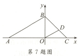 7. 如图所示, 在平面直角坐标系中, $ \triangle ABC \sim \triangle ODC $, 其中点 $ A $ 的坐标为 $ (-2,0) $, 点 $ C $ 的坐标为 $ (1,0) $, 则 $ \triangle ABC $ 与 $ \triangle ODC $ 的面积比是 (