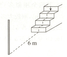 19. (6分) 在一个阶梯旁 $ 6 \, m $ 的地方立有 $ 1 $ 根柱子, 其影子的前端正好到达阶梯前第 $ 3 $ 阶(箭头). 另外, 此时树立 $ 1 $ 根长 $ 70 \, cm $ 的竹竿, 其影子的长度为 $ 175 \, cm $. 设阶梯各阶的高度与深度都是 $ 50 \, cm $, 求柱子的高度.