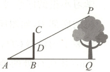 14. 《周髀算经》中记载了“偃矩以望高”的方法.“矩”在古代指两条边呈直角的曲尺(即图中的ABC).“偃矩以望高”的意思是把“矩”仰立放,可测量物体的高度.如图所示,点A,B,Q在同一水平线上,$\angle ABC$和$\angle AQP$均为直角,AP与BC相交于点D.测得$AB=0.4$ m,$BD=0.2$ m,$AQ=12$ m,则树高$PQ=$