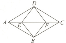 5. 如图所示,四边形 $ABCD$ 是菱形,$E$,$F$ 是对角线 $AC$ 上的两点,且 $AE = CF$,连接 $BF$,$FD$,$DE$,$EB$。求证:四边形 $DEBF$ 是菱形。