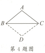 4. 如图所示, 已知 $\triangle ABC$, $AB = AC$, 将 $\triangle ABC$ 沿边 $BC$ 翻转, 得到的 $\triangle DBC$ 与原 $\triangle ABC$ 拼成四边形 $ABDC$, 则能直接判定四边形 $ABDC$ 是菱形的依据是(