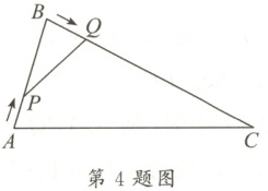 4. 如图所示,在$\triangle ABC$中,$AB = 8\mathrm{cm}$,$BC = 16\mathrm{cm}$,动点$P$从点$A$开始沿$AB$边运动,速度为$2\mathrm{cm}/\mathrm{s}$,动点$Q$从点$B$开始沿$BC$边运动,速度为$4\mathrm{cm}/\mathrm{s}$。如果$P$,$Q$两动点同时运动,那么经过