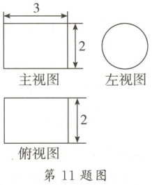 11. 如图所示,这是一个几何体的三视图,根据图中的数据可得该几何体的体积是